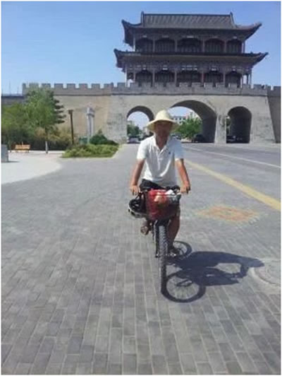 我同他们中间的一个人打了个招呼,得知他们从位于青藏高原的西宁市骑车去黄土高原的延安府,穿越了我的家乡甘肃兰州,顺着黄河飘过了宁夏戈壁滩,进入了陕北地界。看我带个草帽,踏着那个花了250元钱买来的二手山地车,他还问我是不是退了休闲得慌在县城周边骑车溜达呢。